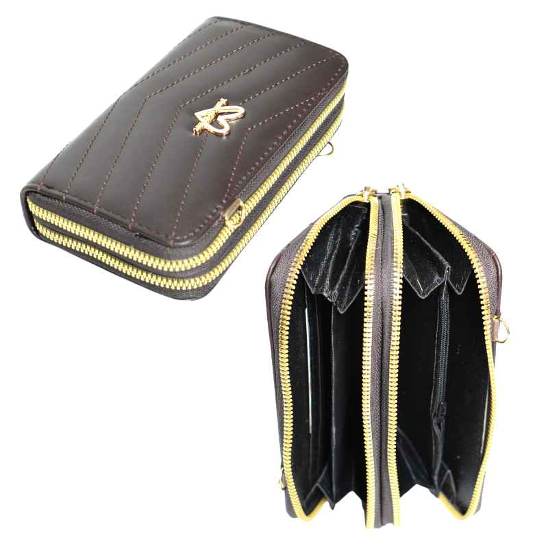 Billetera moderna para mujer de la marca Pink in Sweet está hecha de cuerina sintética encerado con broches y cremalleras de metal, es un producto ideal para llevar a cualquier lugar, sus materiales son muy resistentes y fáciles de combinar.