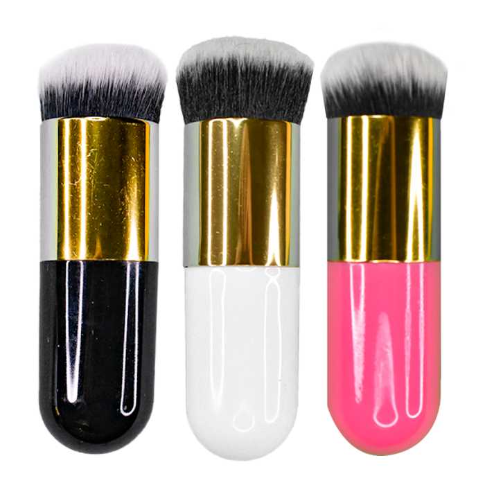 Brochas de unidad en su presentación de 3 distintos colores con mango grueso y cerdas finas color negro con blanco son ideales para difuminar y crear una apariencia uniforme en tu rostro, sus fibras compactas son gentiles con tu rostro. Puedes utilizarlas para aplicación de cualquier producto líquido o en crema.